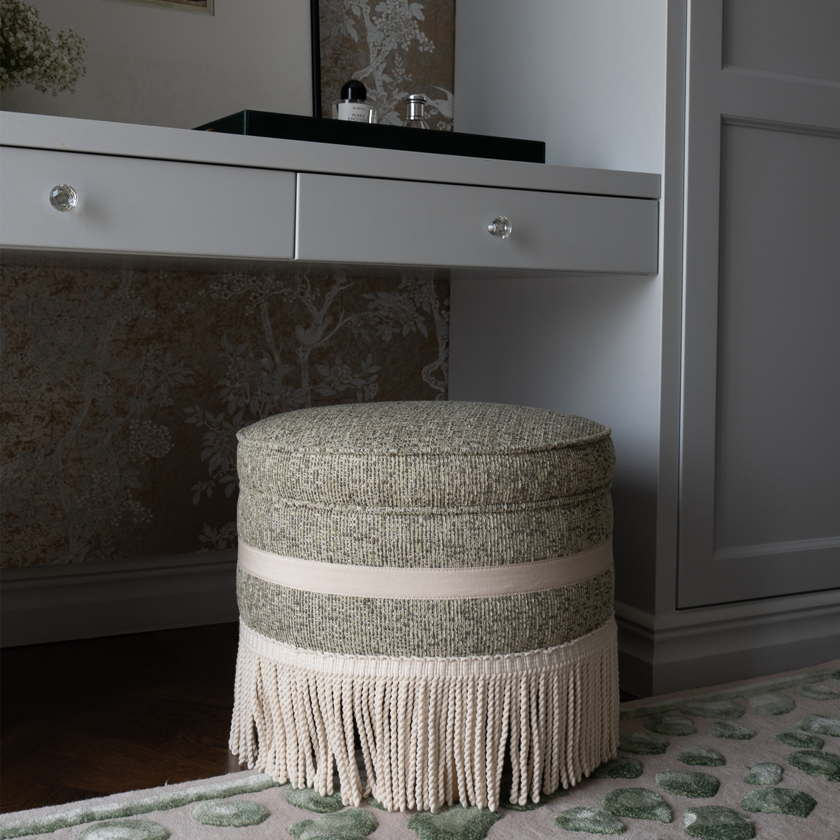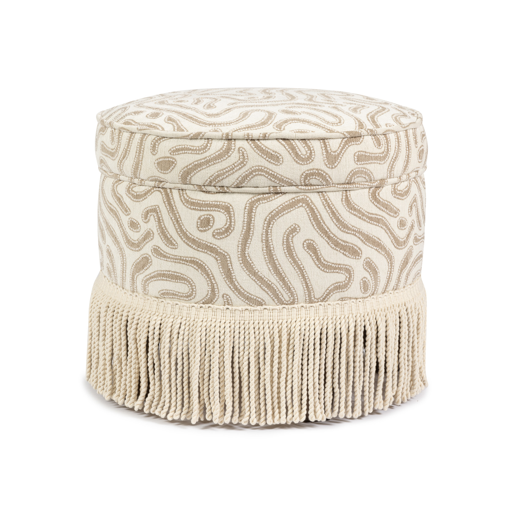 Laurent Pouf – Atoll Fabric & Ivory Fringe