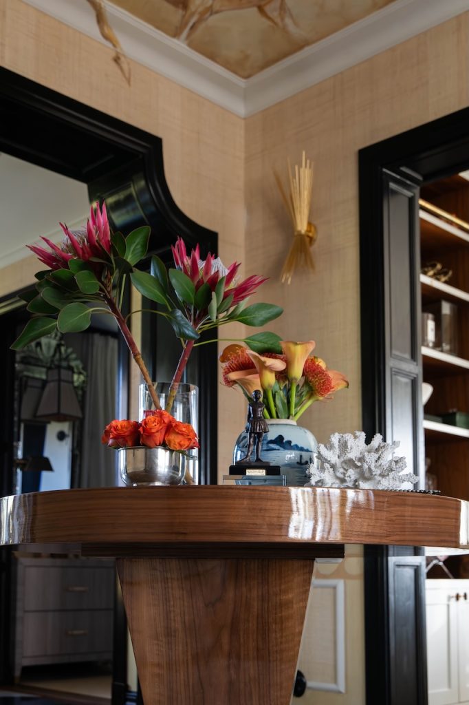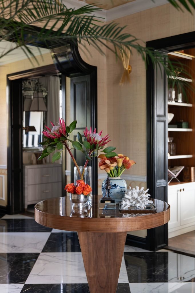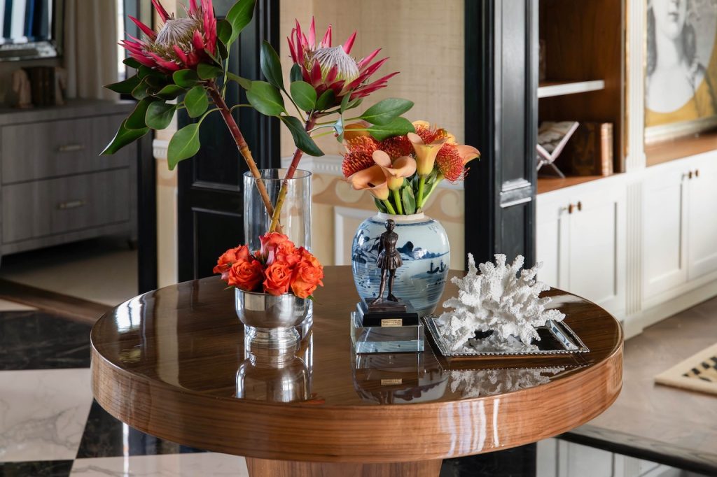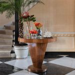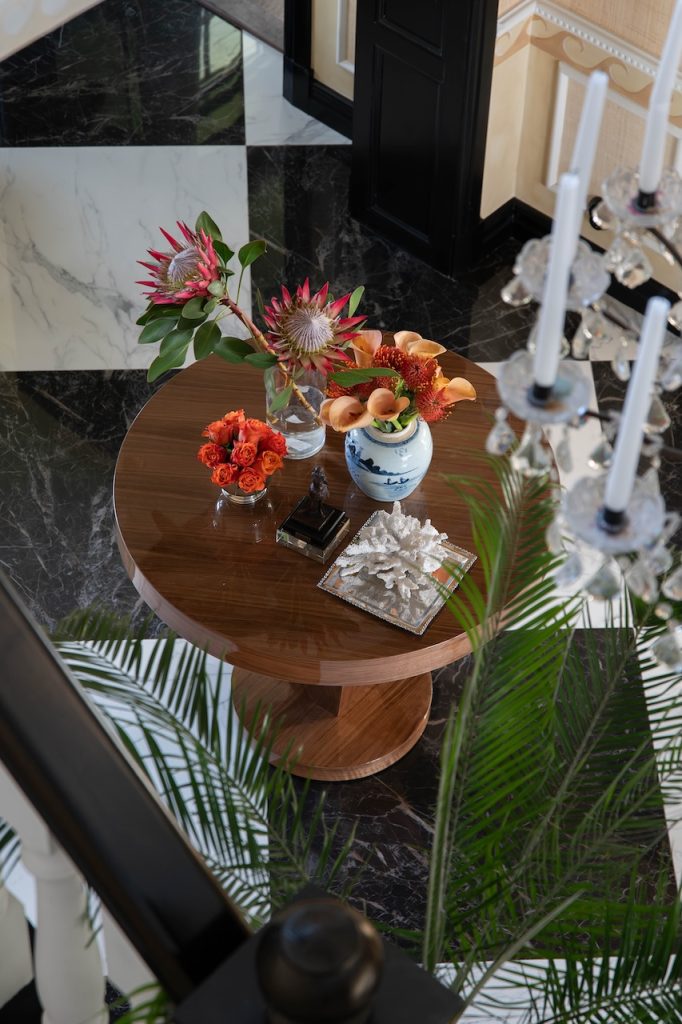 Welcome guests with our elegant round center table, a perfect anchor for your foyer to create a lasting first impression. See it as a canvas for your personal style. Use varying heights, textures, and layers to create a curated look with items like a vase, books or a lamp. Adrian Center Table is crafted with the finest walnut veneer and the high gloss finish enhances the natural beauty of the wood and creates a lustrous and exquisite surface. It can also be used as a dining table and we can of course make it bigger. Also available in a high gloss burl finish.