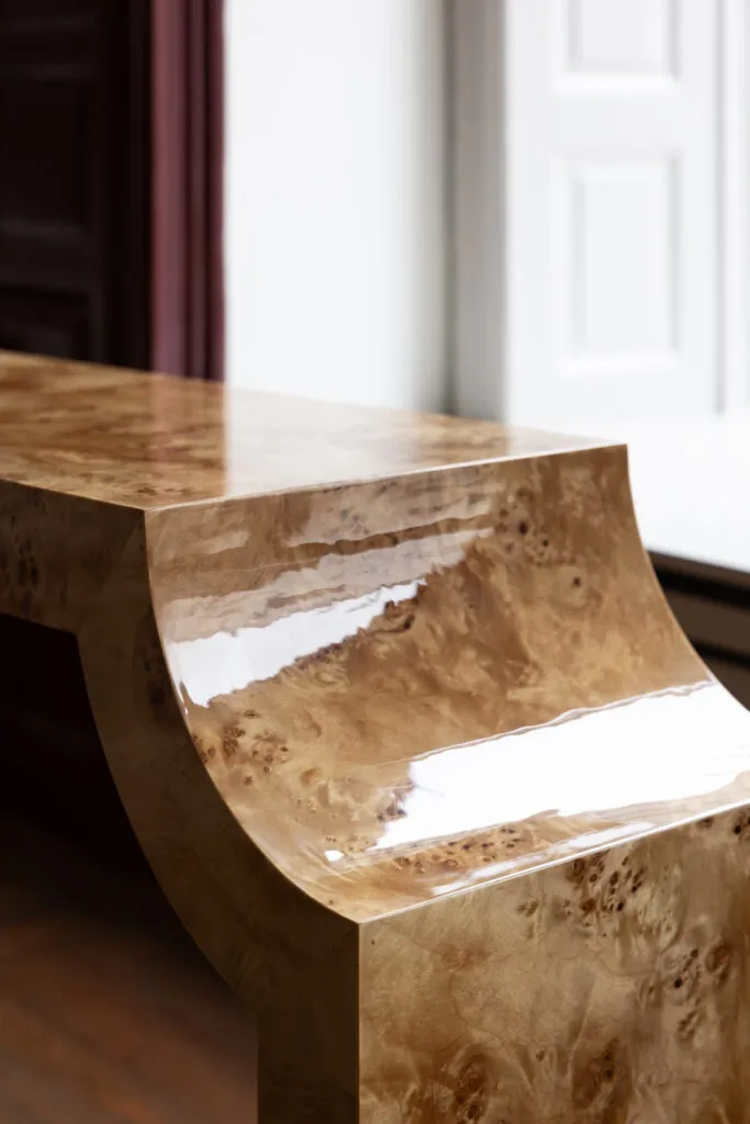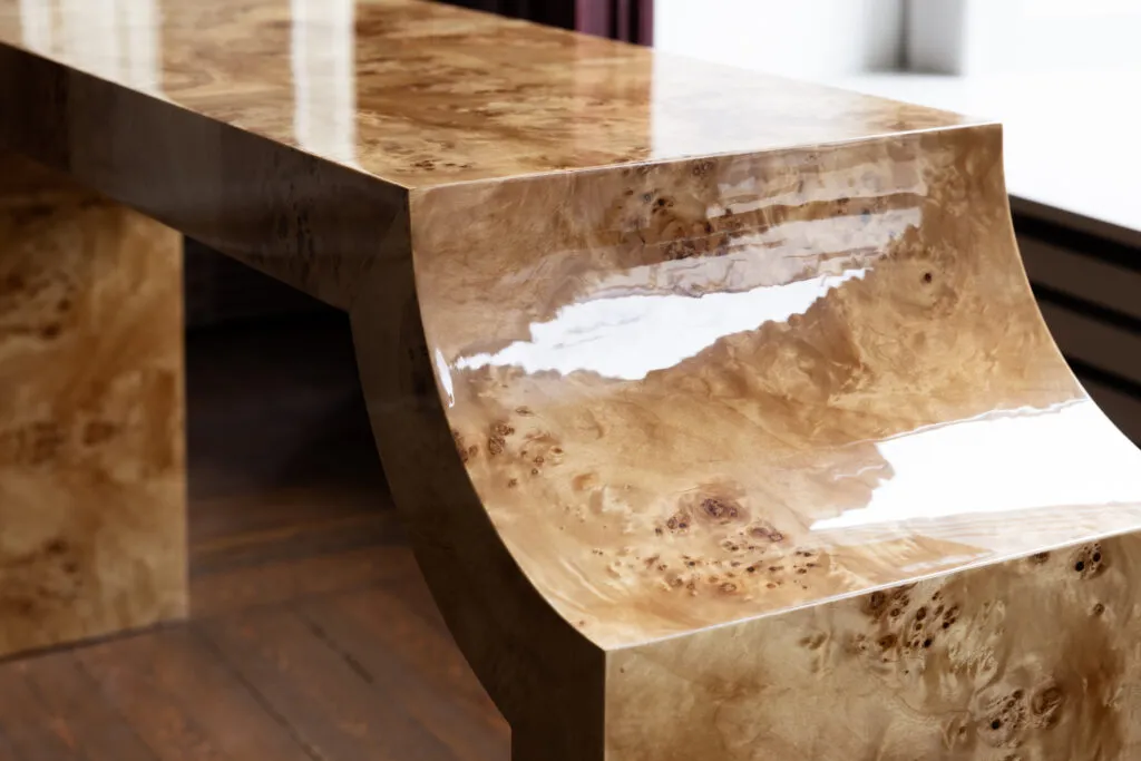 Mdf and burl veneer with high gloss finish