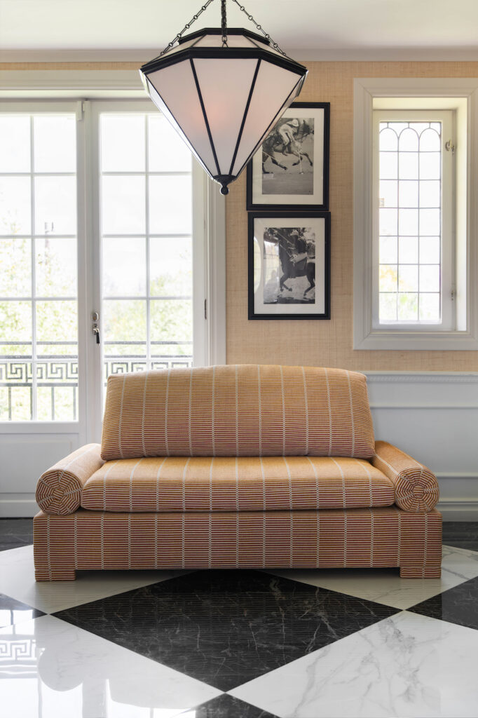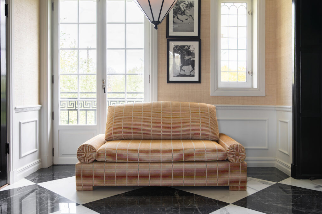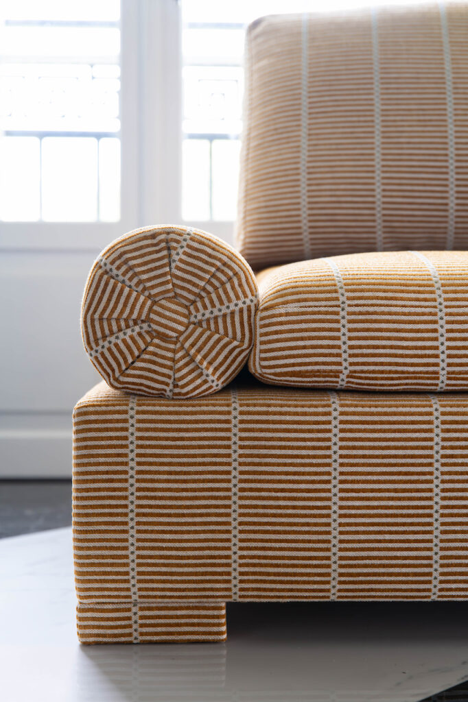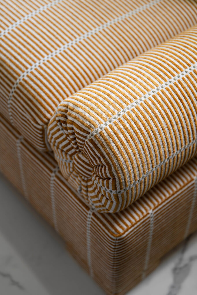 Orlando Sofa - Easy Lustre Fabric, Velvet Piping & Lacquered Legs