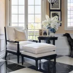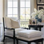 Topped with a plush white linen cushion, it offers a soft, breathable surface ideal for putting your feet up or providing extra seating. The clean contrast between the crisp white linen and the rich black frame adds a fresh, tailored feel to any room.