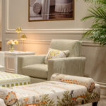 This velvet jacquard, woven on a traditional loom offers a refined interpretation of the tigers’ coat. Composition: 78% Viscose, 11% Cotton, 11% Polyester