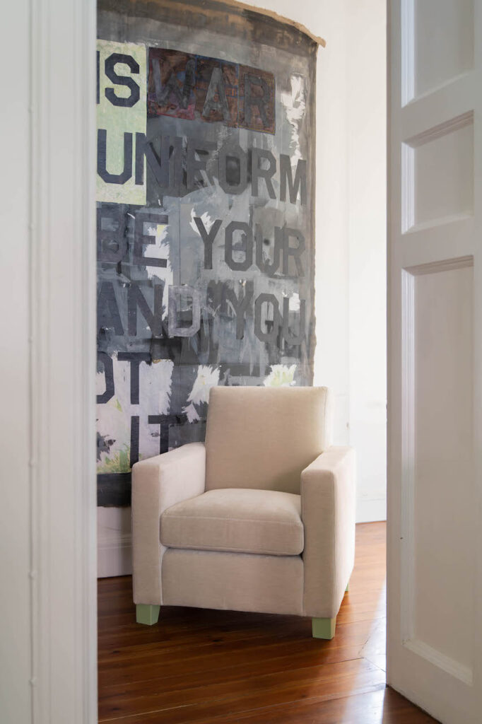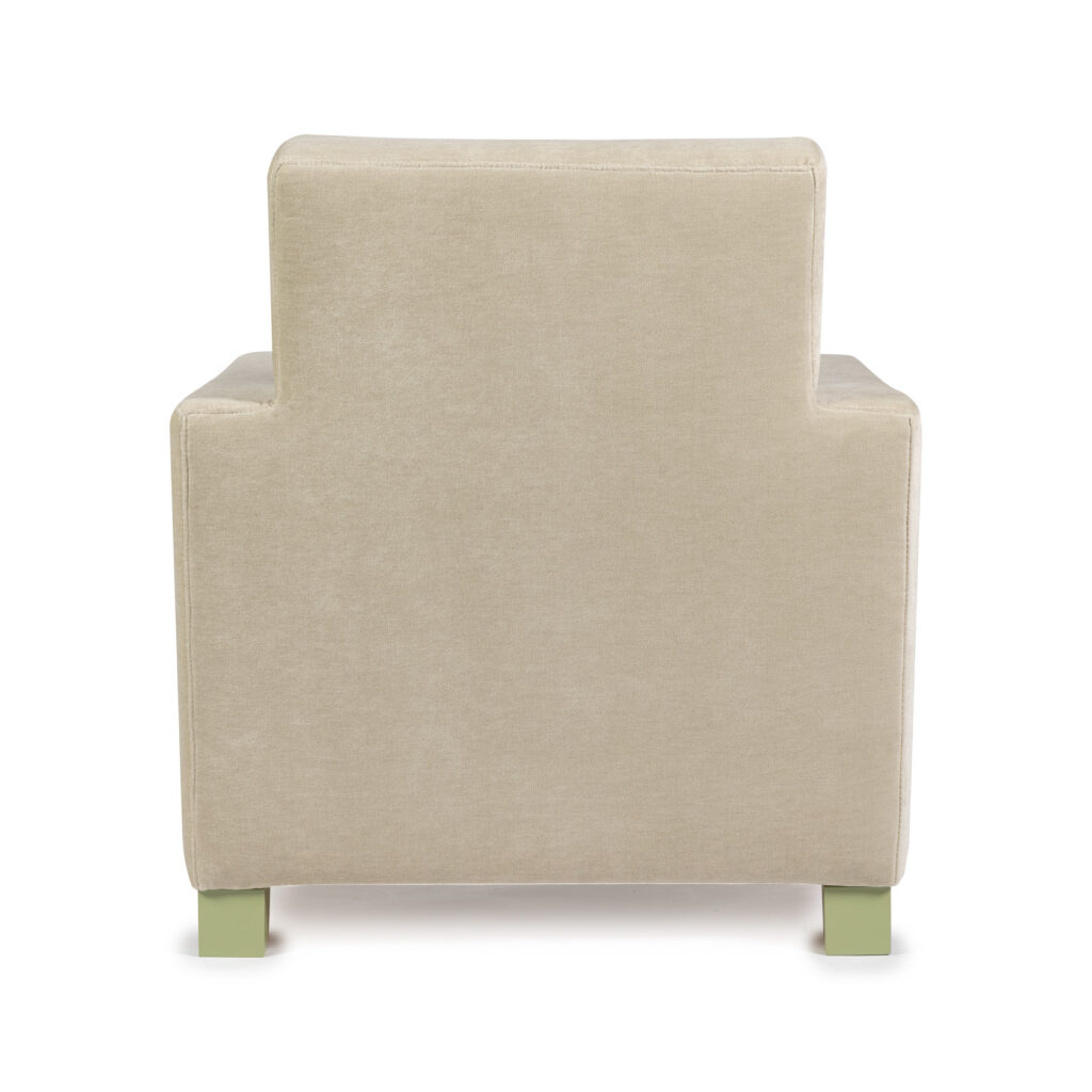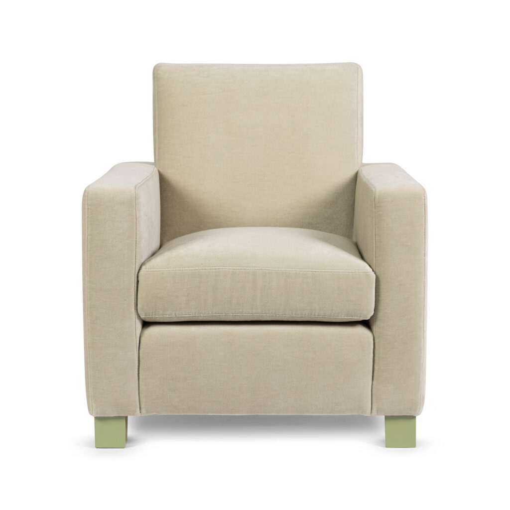 We have upholstered this Caspian club chair in a lovely mock mohair fabric and have painted the legs in a high gloss tulip green color. Made in Europe.