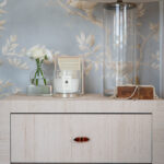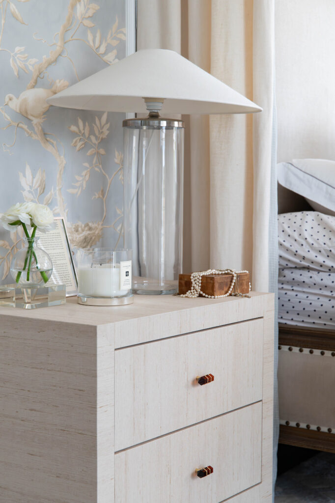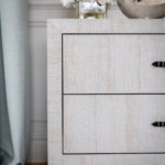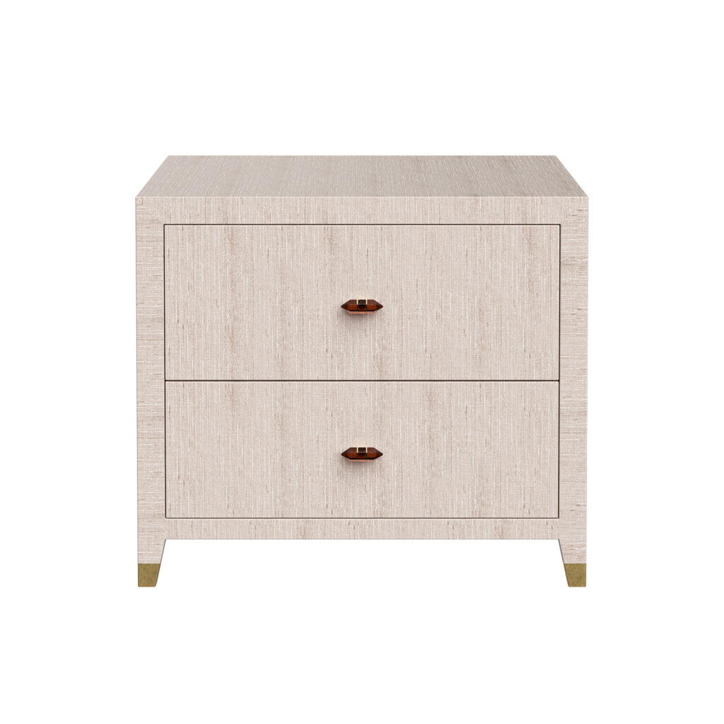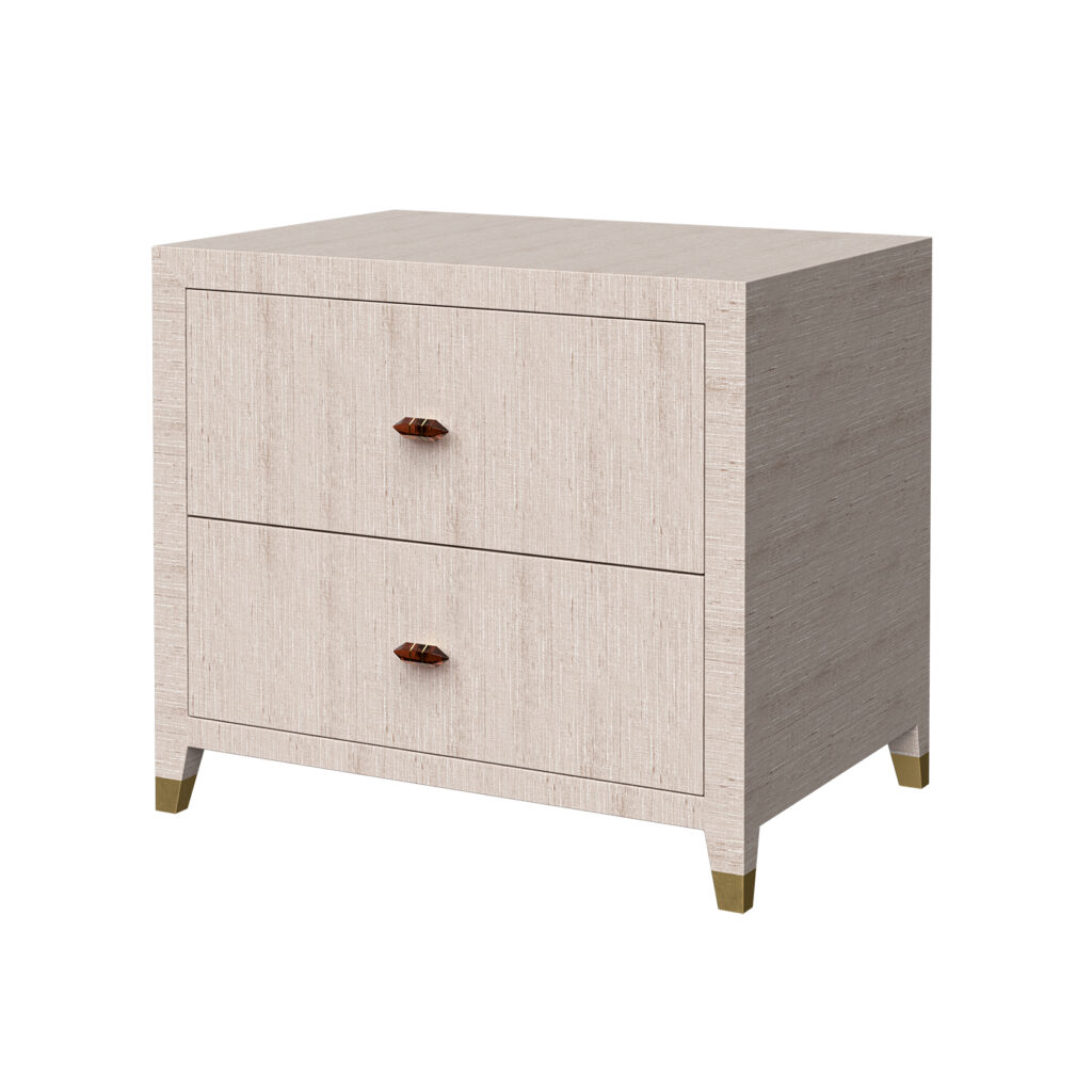 George Collection consists of grasscloth furniture with gemstone pulls. The tables are true perfection and craftsmanship designed from scratch by the RIJD design duo Caroline and Susanne. We proudly present our furniture wrapped in lustrous silk grasscloth (wipe'able, don't worry) and we even went as far as adding gemstone pulls in your color of choice - tigers eye, green emerald, blue sapphire and a brandy coloured gemstone. With an asian fusion modernistic look, this bedside table might distract you with it's allure while in bed...Joke aside, a pair of these and you have anchored the bed and framed it in the best possible way. We believe that bigger is better and we are proud to be able to offer night stands that actually fit a large lamp AND a glass of water (and a bouquet of flowers for you romantics out there). Available in several colors of grasscloth.