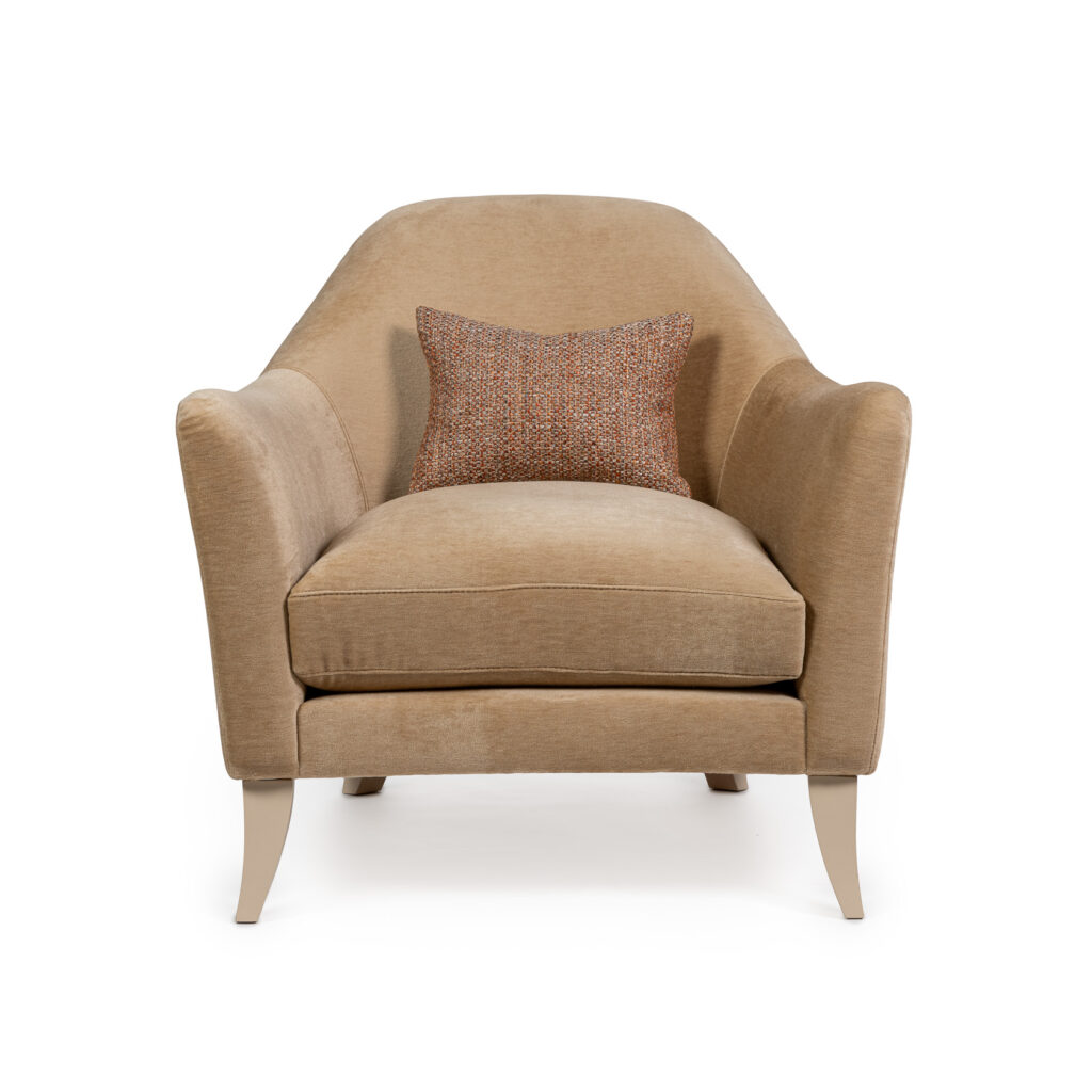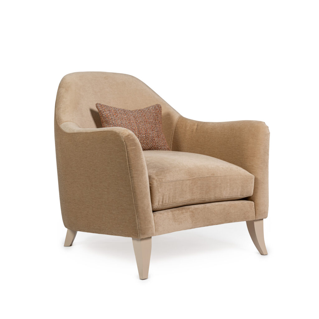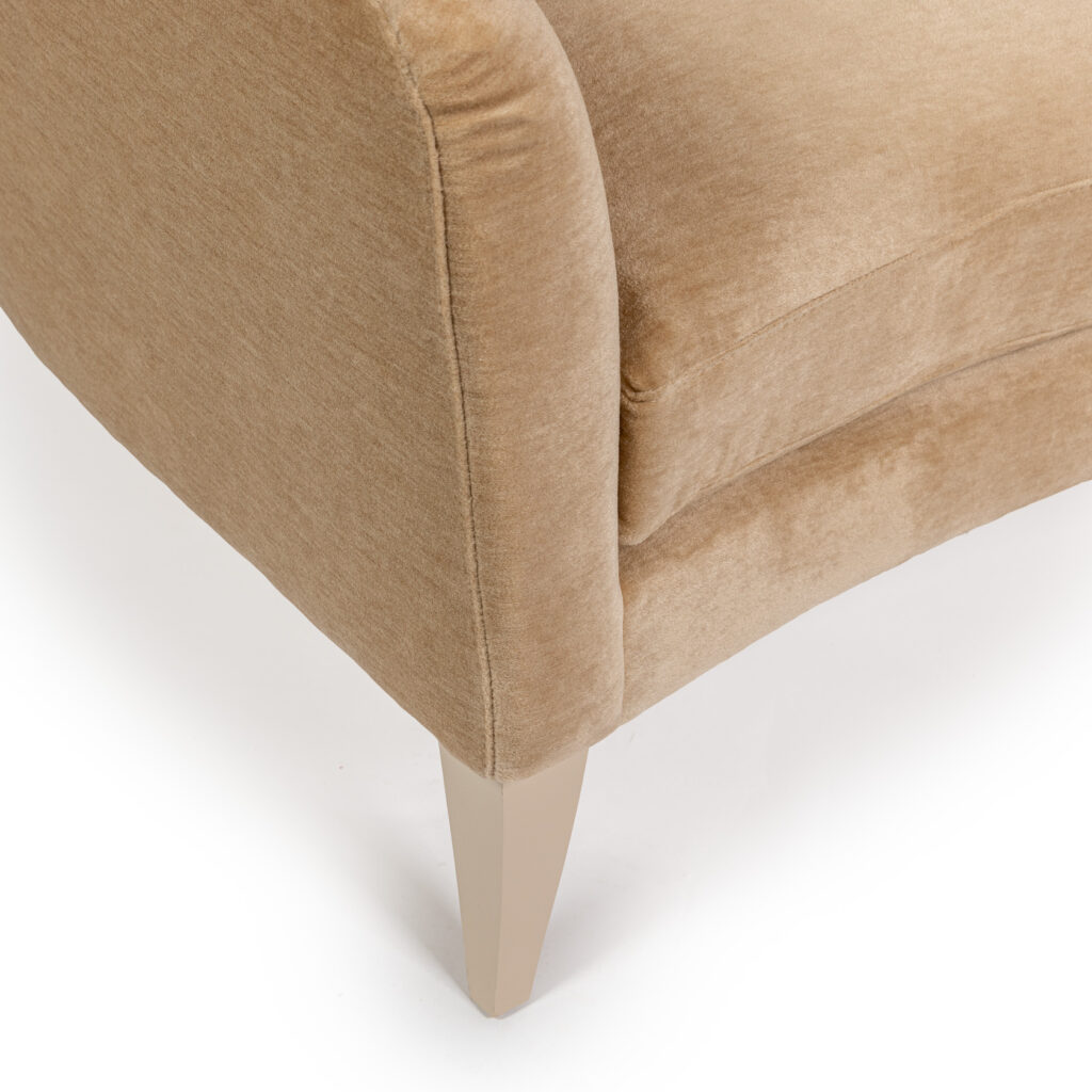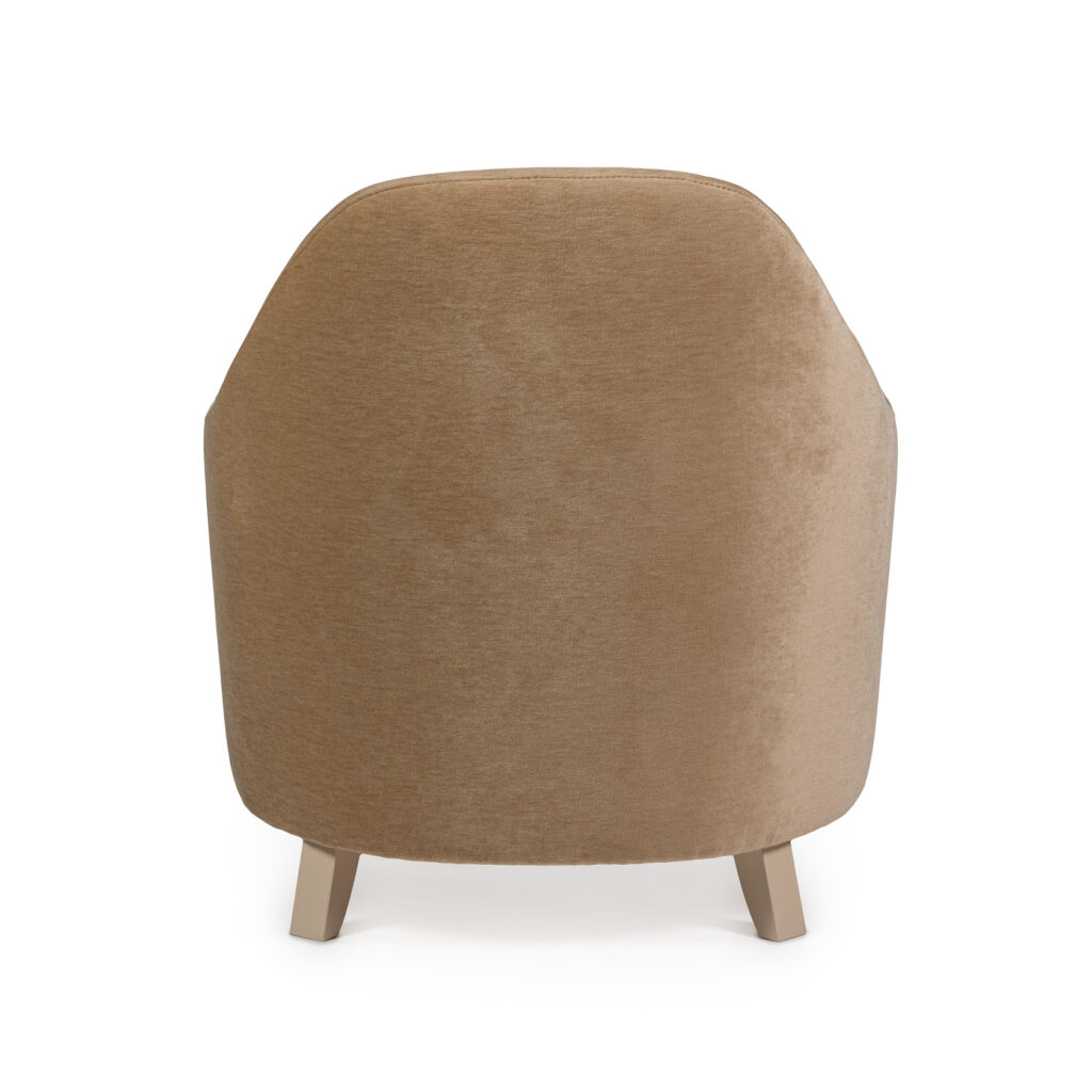 RIJD x The Interior Guide. Meet Gio - named after Mimi's daughter - this lounge chair exudes soft, feminine and elegance. Gio has a modern expression with interesting angles and upholstered in a soft blush/beige colored faux mohair that softens the curves and expressions. It is not overpowering; it is complimenting a seating arrangement in the best possible way. Gio is not necessarily the star of the show but is the one that balances out the interior and allows for comfortable seating, with the perfect measurements and dimensions. Dressed in a lovely blush-colored Mock Mohair fabric. Legs in solid wood with a high gloss finish matching the fabric. This piece belongs to the collab collection between RIJD and Mimi Basart from "The Interior Guide". Made in the EU.