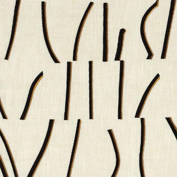 This piece with a beautiful fringe is made in the gorgeous fabric Bejuco from Casamance. “Bejuco” refers to the lianas found in tropical regions who flexible stems are used for wickerwork and other crafts. They are embroidered on a line/cotton base using two different coloured yarn in different materials: one viscose and the other polyester. They embellish the natural fabric with their matte and shine.