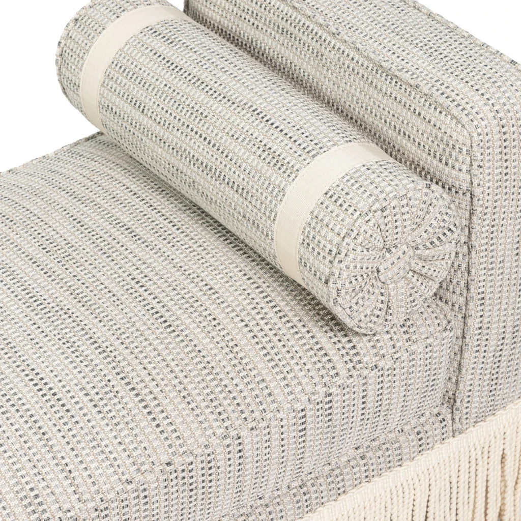 Designed for real life, the easy-clean fabric means you don’t have to baby it. Spills, dust, and daily wear are no drama. Just a quick wipe and you’re back to beautiful. The plush seat cushion offers inviting comfort, while the bolster pillows add both support and a tailored, decorative touch. Finished with a refined bullion fringe, this bench strikes that sweet spot between classic charm and modern ease. It looks luxurious, feels cozy, and works hard. Exactly what great furniture should do. Made in EU.