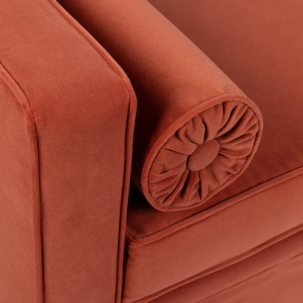 Beech wood, plywood and HDF board. Hr foam, silicone fiber. FabricDimensions: