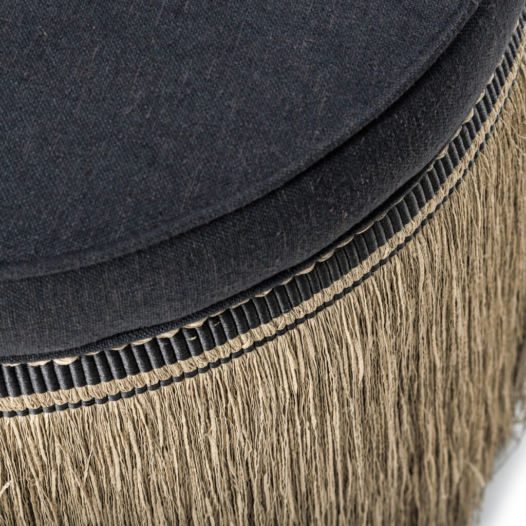 Pouf - what a weird name for a piece like this. But it is what it is. We’d call it an eye-catcher. Laurent is as versatile as it gets. In the walk in clo- set, in the seating area, used as a side table with coffee books stacked on top. Laurent is there for it. Just don’t call him pouf to his face, he’ll get offended. Laurent sometimes like to show off with fringes and he likes his skirt. The rounded legs are also a favorite for a more modern look. Want him bigger (can’t blame you) that is possible of course. Standard size is 50cm in diameter but larger dimensions are possible. This pouf is dressed in an ebony colored plain fabric and is adorned with a chic fringe from Houlès. Made in Europe.
