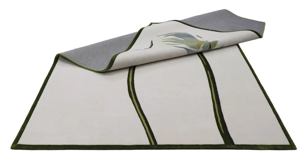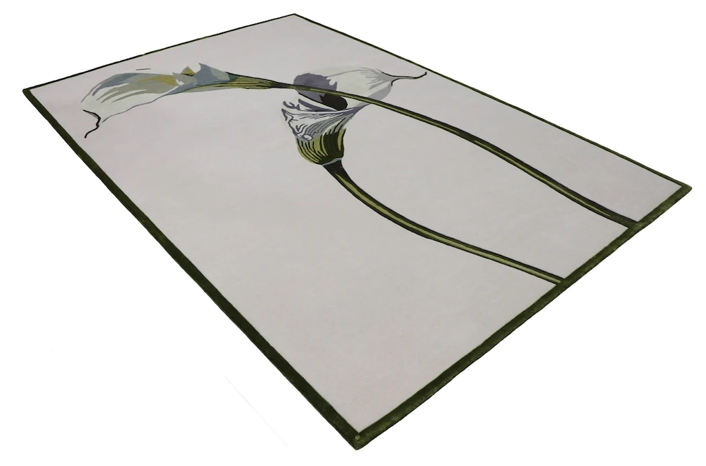 Bring calm, botanical beauty into your home with the Lily Rug. Featuring two gently curved lily stems in soft, muted tones, this design balances simplicity and sophistication. The hand-illustrated look and subtle color palette create a serene focal point without overwhelming the room. Inspired by classic botanical art, the rug feels timeless yet modern. The framed composition gives the rug an almost gallery-like presence, turning the floor into a canvas. Lily is a handmade rug in wool, tencel and silk. Can be made in any colors and sizes.