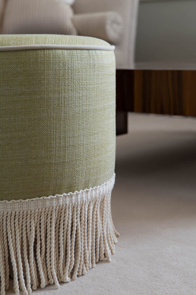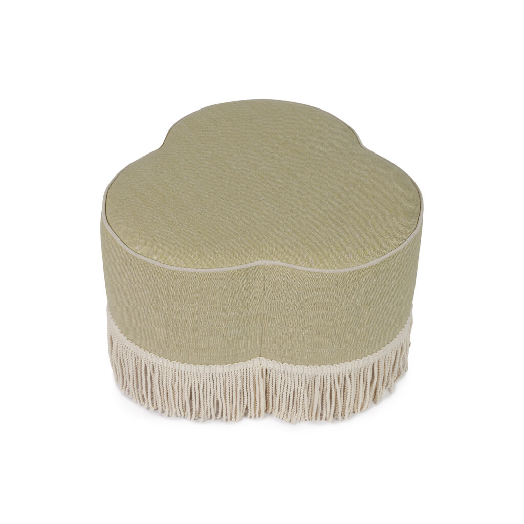 Our beloved lucky charm in the shape of a clover. The natural extension of a traditional round pouf and the cousin to Laurent. A fun and whimsical shape that merits having a fringe to enhance the wow-factor even more. Lucky is versatile in the sense that it can be placed in a living room arrangement, as a decor in bathroom, dressing room...well, yeah - anywhere where you need a little glam really. You'd be lucky (hehe) you found it with us. This fringed pouf is upholstered in our RIJD Easy Lustre fabric which combines the latest Stain-Free Technology with style and high-quality. This to ensure easy clean low maintenance, with a long lasting look and feel. It has a luxurious soft touch and a beautiful lustre. Lucky Pouf is made in EU.