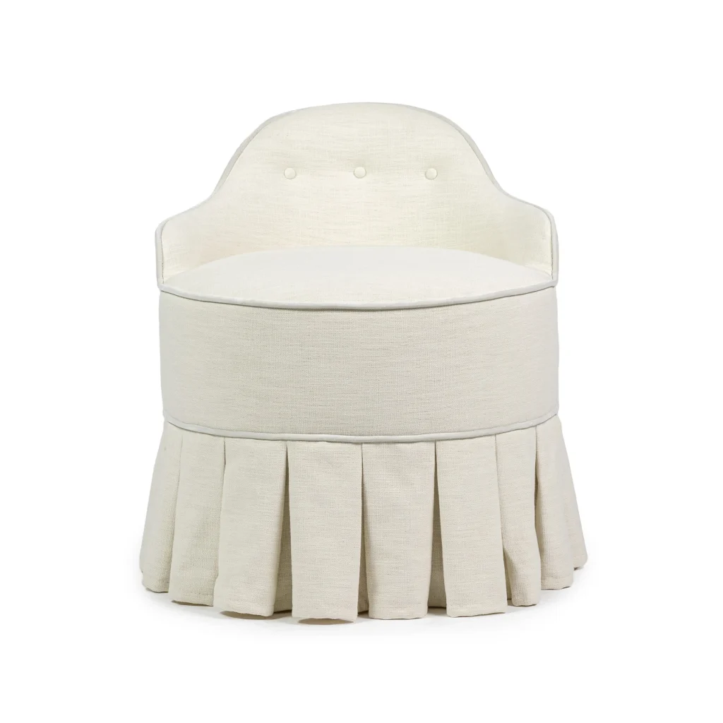 Bring out the Hollywood star in yourself! Our LOU vanity stool is an exquisite piece of furniture designed to add style, elegance, and comfort to one's vanity area. It is crafted with high-quality materials and attention to detail, showcasing fine craftsmanship. The design of Lou vanity stool is typically plush and ornate, featuring intricate pipings, decorative accents, or embellishments.