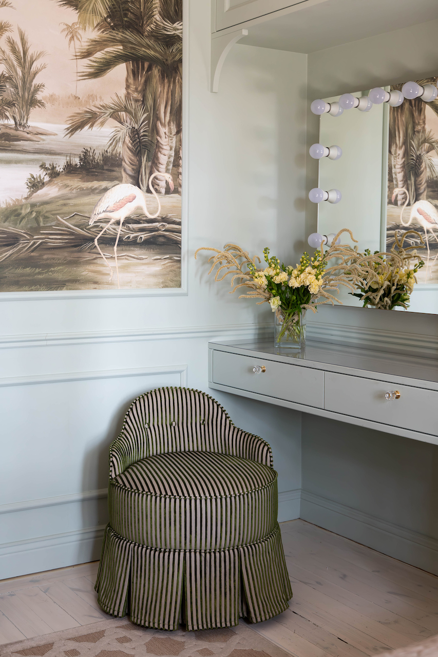 Bring out the Hollywood star in yourself! Our LOU vanity stool is an exquisite piece of furniture designed to add style, elegance, and comfort to one's vanity area. It is crafted with high-quality materials and attention to detail, showcasing fine craftsmanship. The design of Lou vanity stool is typically plush and ornate, featuring intricate pipings, decorative accents, or embellishments. Comfort is key for our Lou, as it has padded seats and backrests, providing an indulgent seating experience. Ultimately, Lou is not 'just' a functional piece of furniture but also a statement piece that enhances the overall aesthetics of a vanity area, bringing a sense of opulence and refinement to the space. Made in Europe.