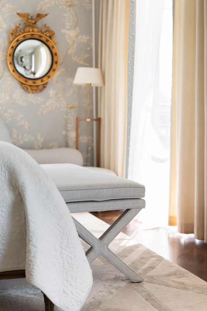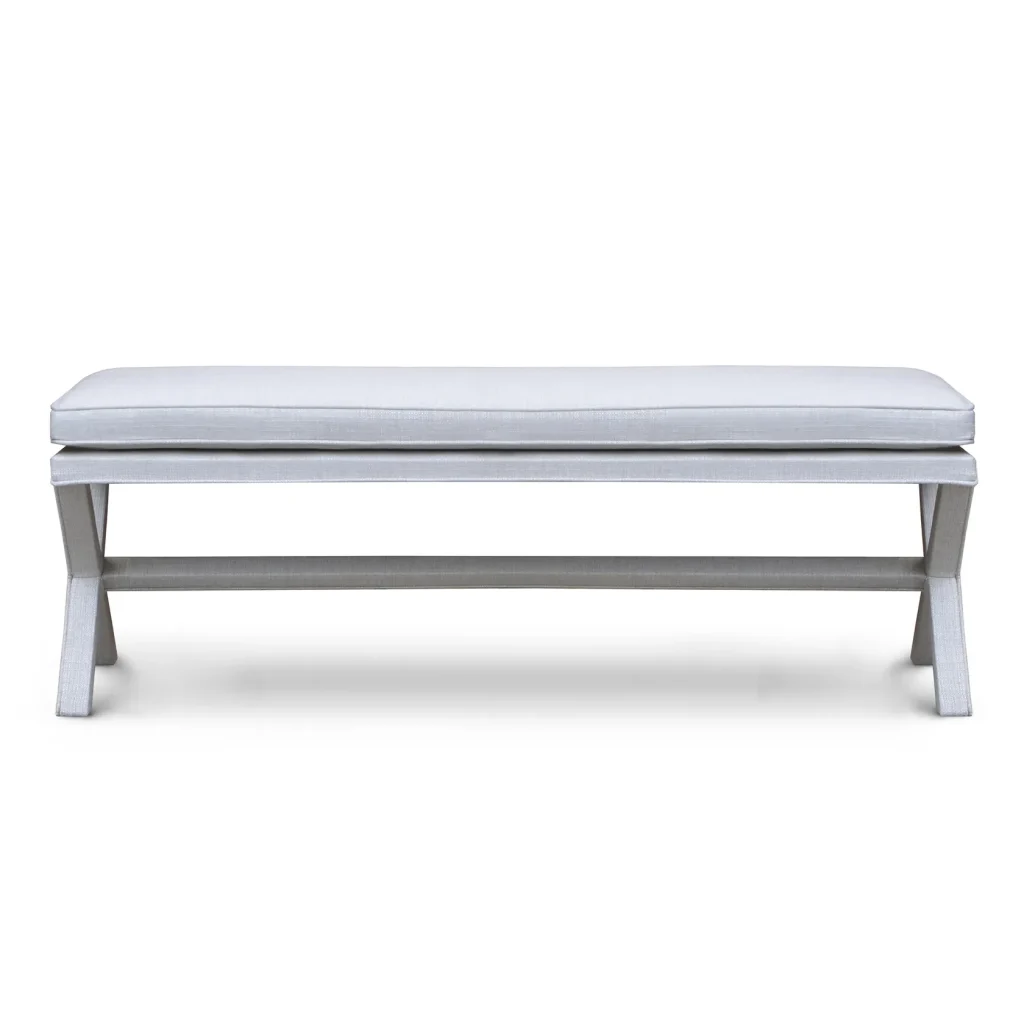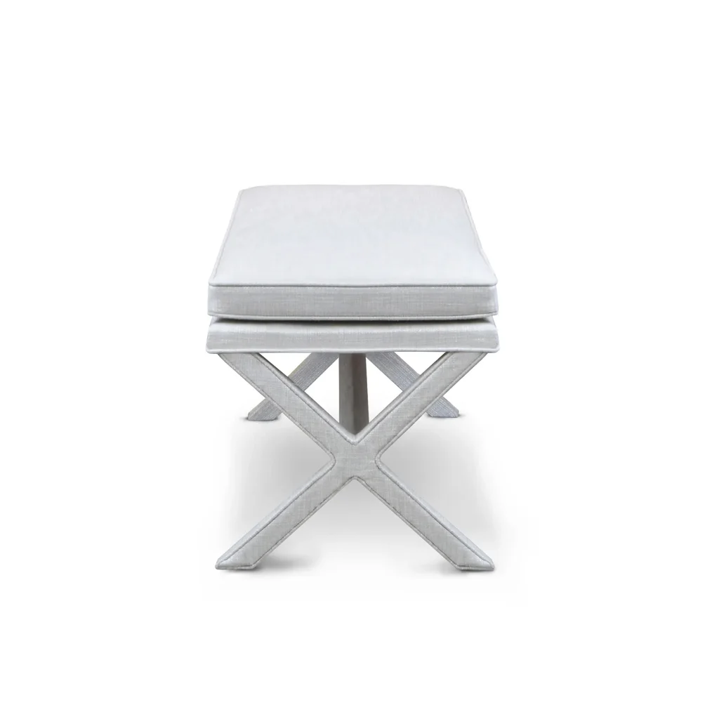 Marcel is an ode to the craftsmanship of upholstery. The detailing of the piping across the X shaped base, the double cushion with piping - everything comes down to perfection. We named this piece Marcel as we can see someone with that name tailoring a suit with a measuring tape around his neck in Paris or Milan. This particular piece is made in a luxurious Italian fabric in a beautiful light blue shade.