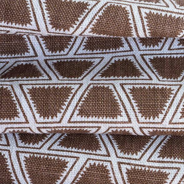 This piece is dressed in the handprinted fabric "Kindondo - Tobacco" from the Swedish textile designer Cathy Nordström.