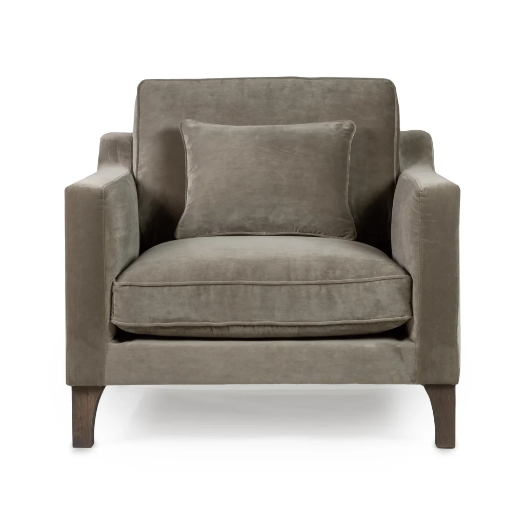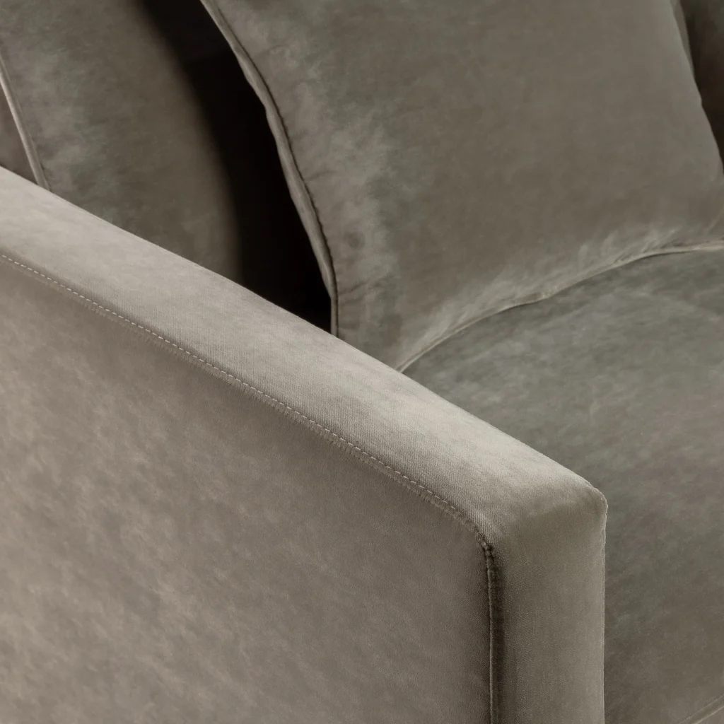 The lines follow itβs fellow namesake Orlando Sofa, with the curved armrests and the plush bolsters. This armchair is big enough to be comfortable curling up with a cup of tea, but nimble enough to allow for pairing in two. The foundation of the lounge chair is solid wood, upholstered in lushious fabric of choice. It can be adorned with fringes, trims and piping as well as staying just as it is. Each to their own. The thought is that the baseline of the design is so compelling that it works both with or without embellishments. Made in EU.
