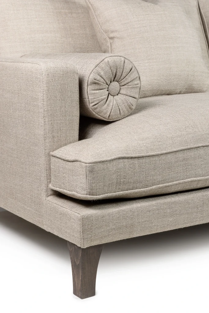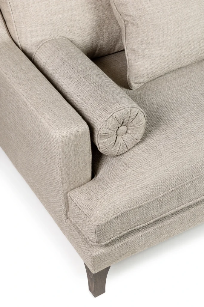 A luxurious statement piece. Orlando has a timeless silhouette designed for everyday living. Generously proportioned with a deep, inviting seat, it strikes the perfect balance between relaxed comfort and tailored style. The pair of bolster cushions soften the clean lines and add a designer touch, while the supportive back cushions make it just as good for long lounging sessions as it is for entertaining guests. Slim arms and elegant, tapered wooden legs keep the look light and sophisticated. Upholstered in an easy-clean fabric, Orlando is made for real homes. Spills and marks are far less stressful, so you can enjoy a beautiful sofa without tip-toeing around it. Made in EU.