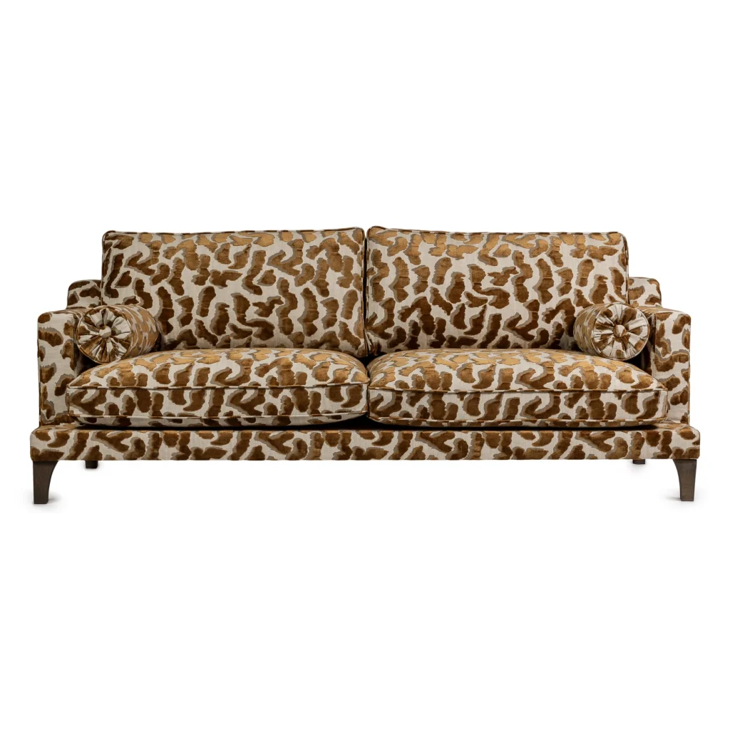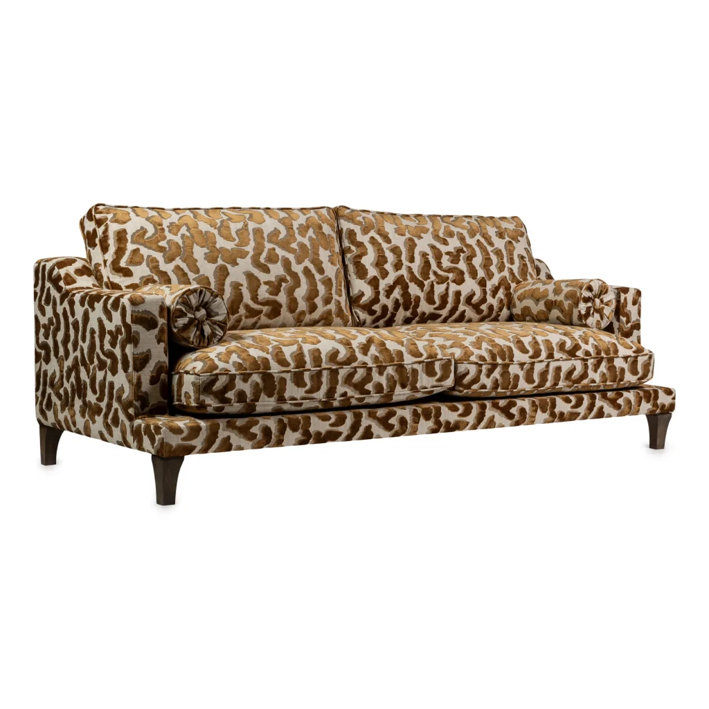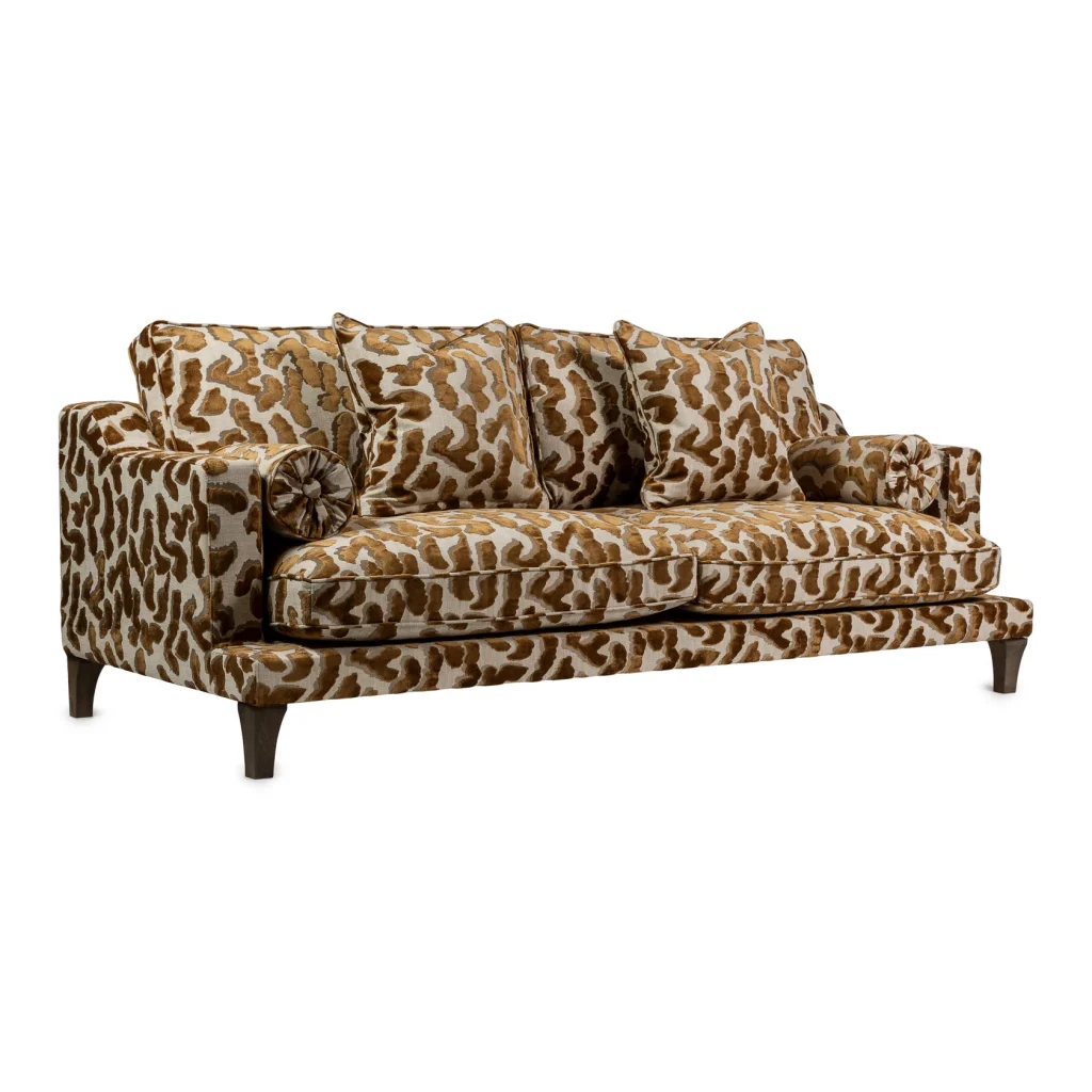A luxurious statement piece reminiscent of old Hollywood Glamour with a modern take. Wrapped in a beautiful fabric from Casamance, it features tailored piping, plush seat cushions, and thoughtfully coordinated accent pillows and bolsters that create a beautifully cohesive look. The sofa has extraordinary seat comfort and is made in first class quality. Made in EU.