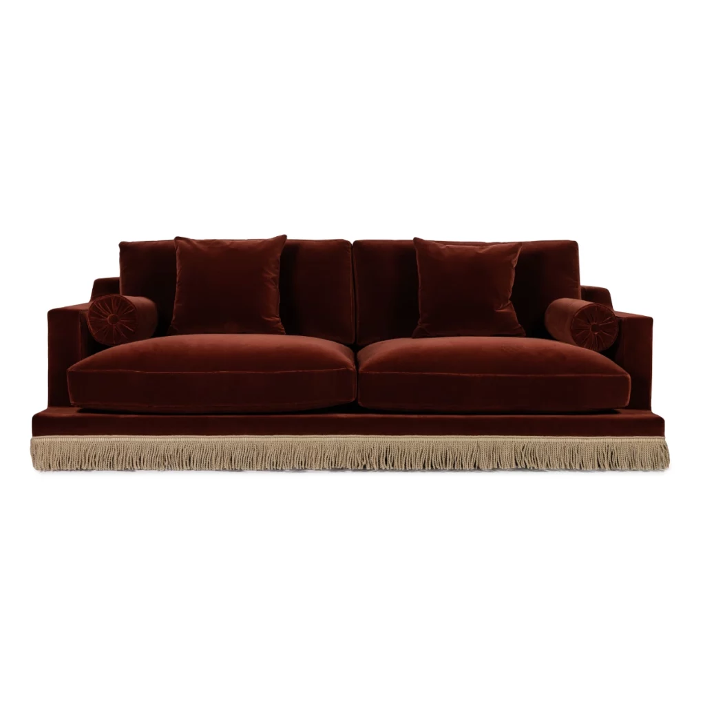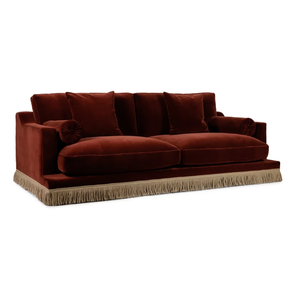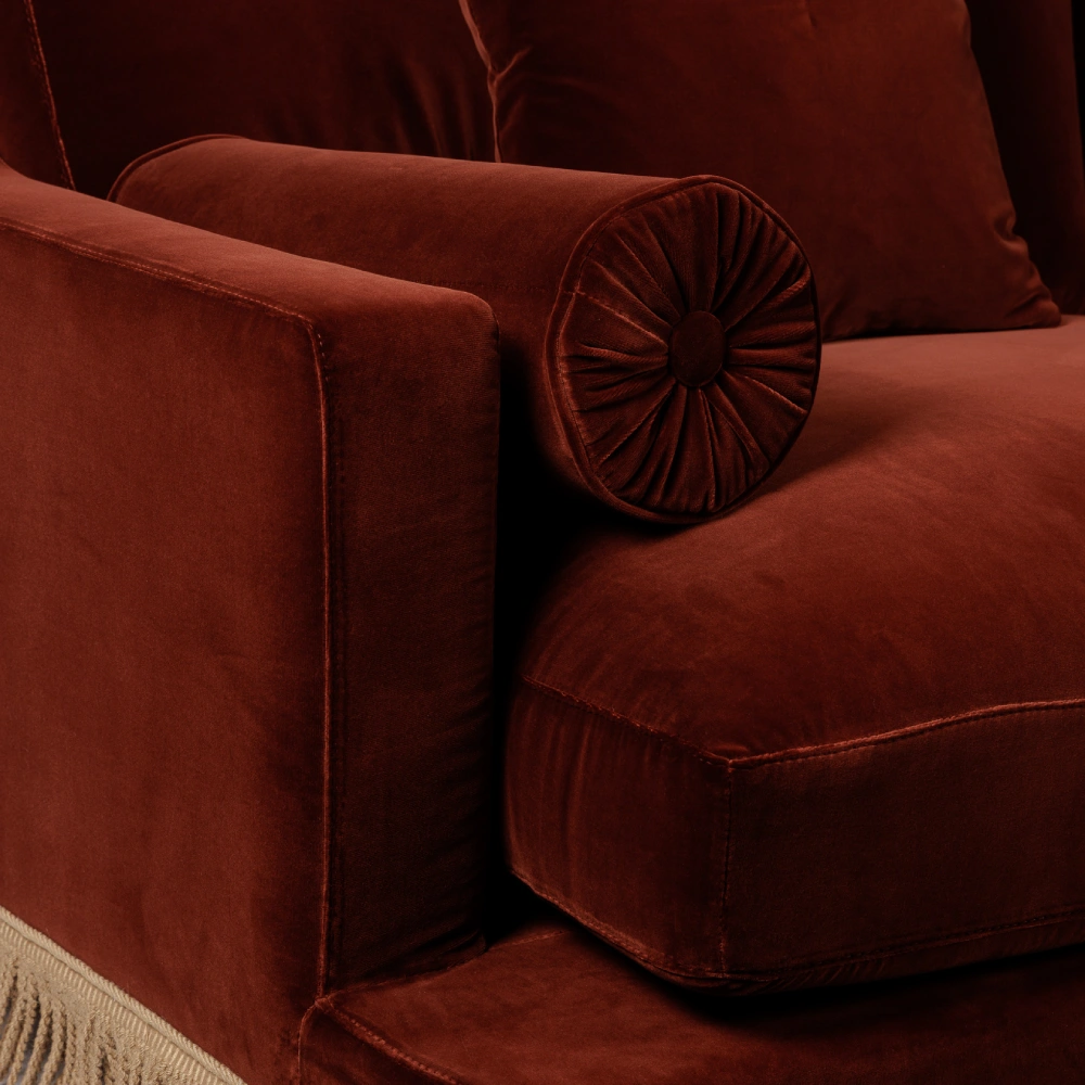 Orlando Sofa - Rust Velvet & Beige Houlès Fringe