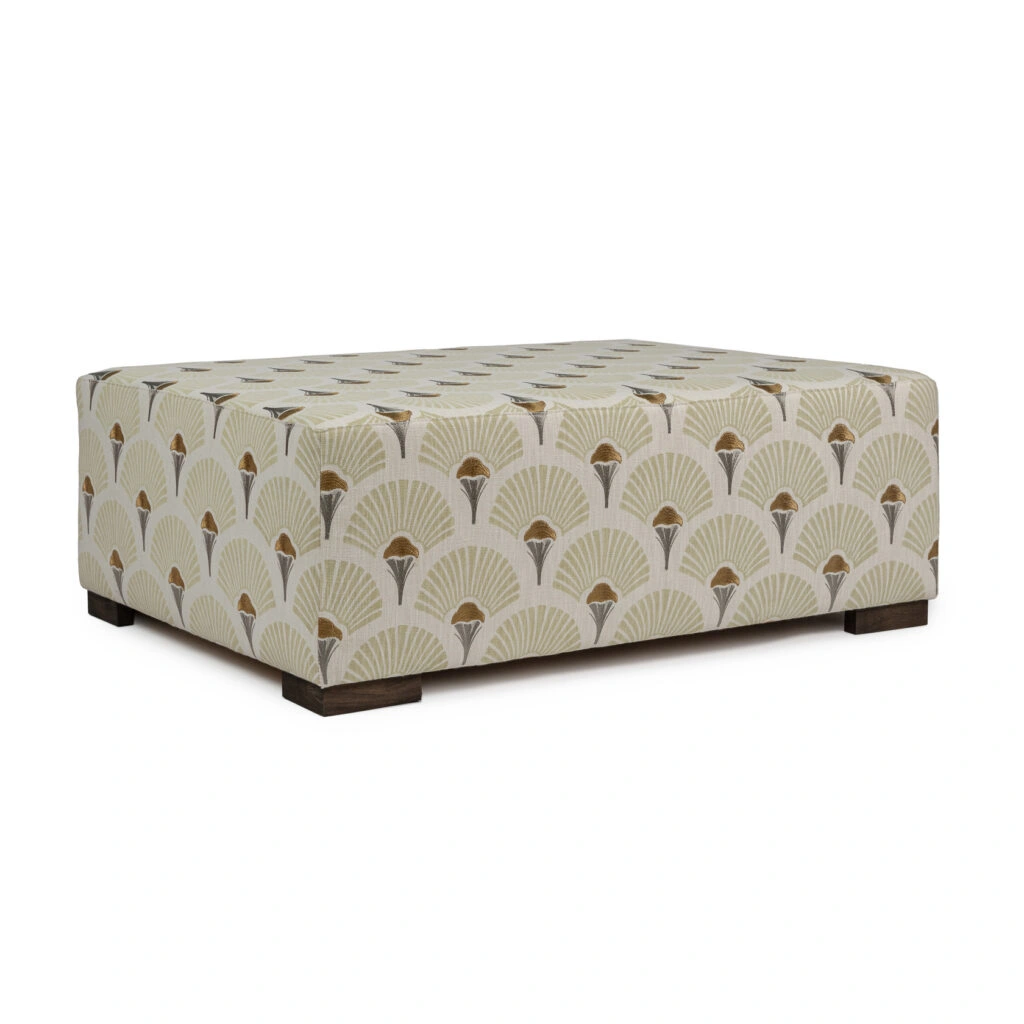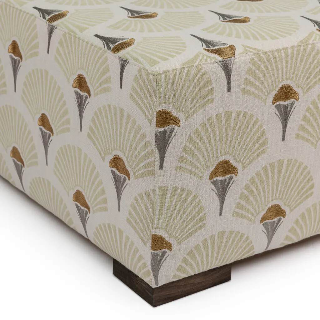 Pascal Ottoman; a perfect ottoman for extra seating or as a stylish coffee table. This piece is the beautiful and luxurious fabric "Linefolia" from Casamance. On a linen and cotton fabric, the stylised floral design is screen-printed before being embroidered . This print is perfect for the natural composition of the fabric: the volume of the inks brings an authentic look to the design which looks handpainted. The sepals of the flower are embroidered with a cotton yarn giving a lovely texture. Pascal Ottomans is made in EU.