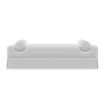 The dimensions of the seat bench is 150. Not too big and bulky, not too small and 'shy'. Pontus is not the one to 'put in a corner' but rather placed as a center piece in a sofa section etc. There's so much flexibility that allows for the bench to be placed in the entryway, living room, or bedroom etc. Choose between fringe, skirt or visible legs and if you want piping or no piping around the bolsters.
