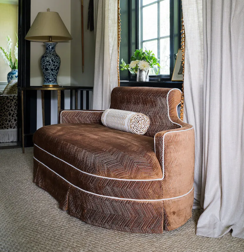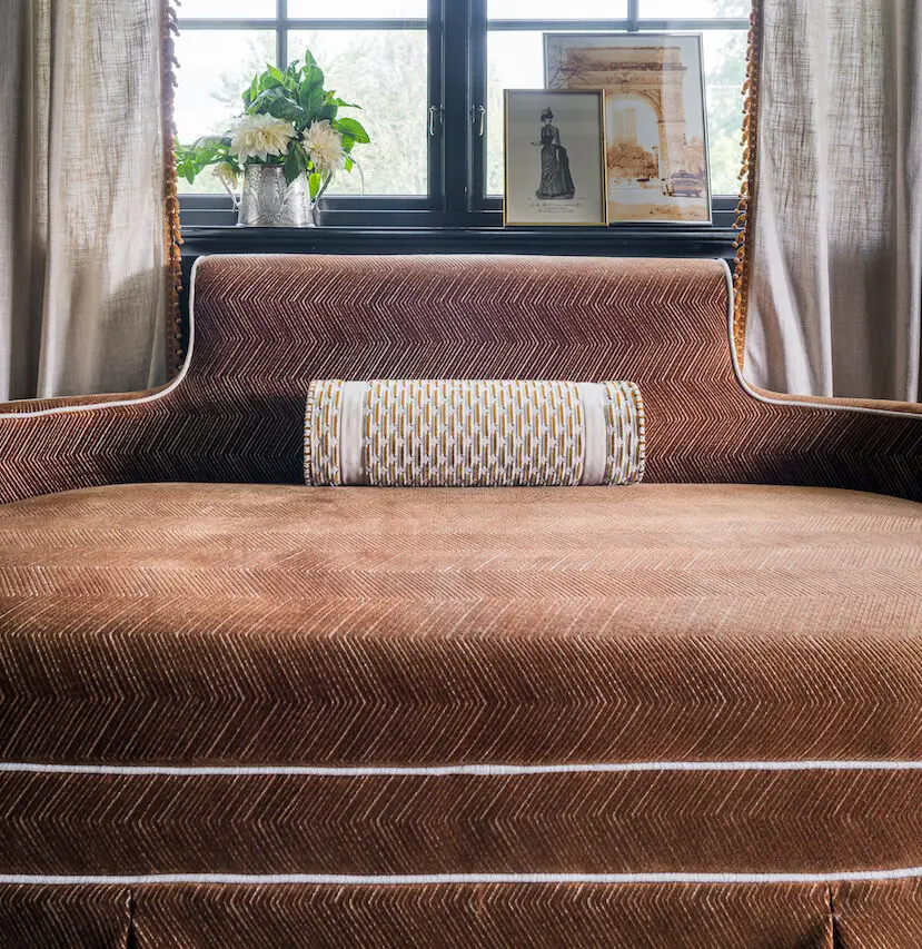 This velvet jacquard, woven on a traditional loom offers a refined interpretation of the tigers’ coat. Composition: 78% Viscose, 11% Cotton, 11% Polyester