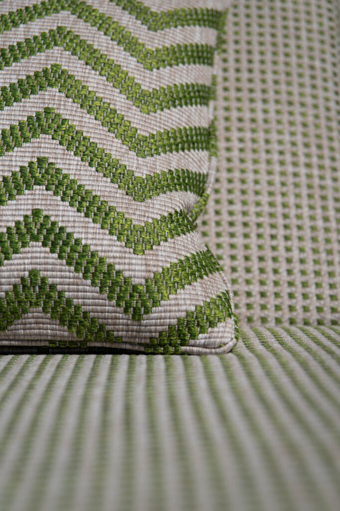 Our outdoor pillows are filled with silicone goodness and wrapped in fabulous fabrics designed for the great outdoors. We’ve chosen a show-stopping vibrant green from Lizzo that plays nicely with nature, but don’t worry; we have options if green isn’t your thing. Choose your fabric, specify your dimensions, and rest assured—our commitment to couture quality means you’ll be lounging like royalty in no time! Made in EU.