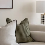 This luxurious RIJD decoration pillow with piping is made in a striped velvet fabric from Nobilis. Filled with down. Can be made in other sizes and colors. Made in EU.