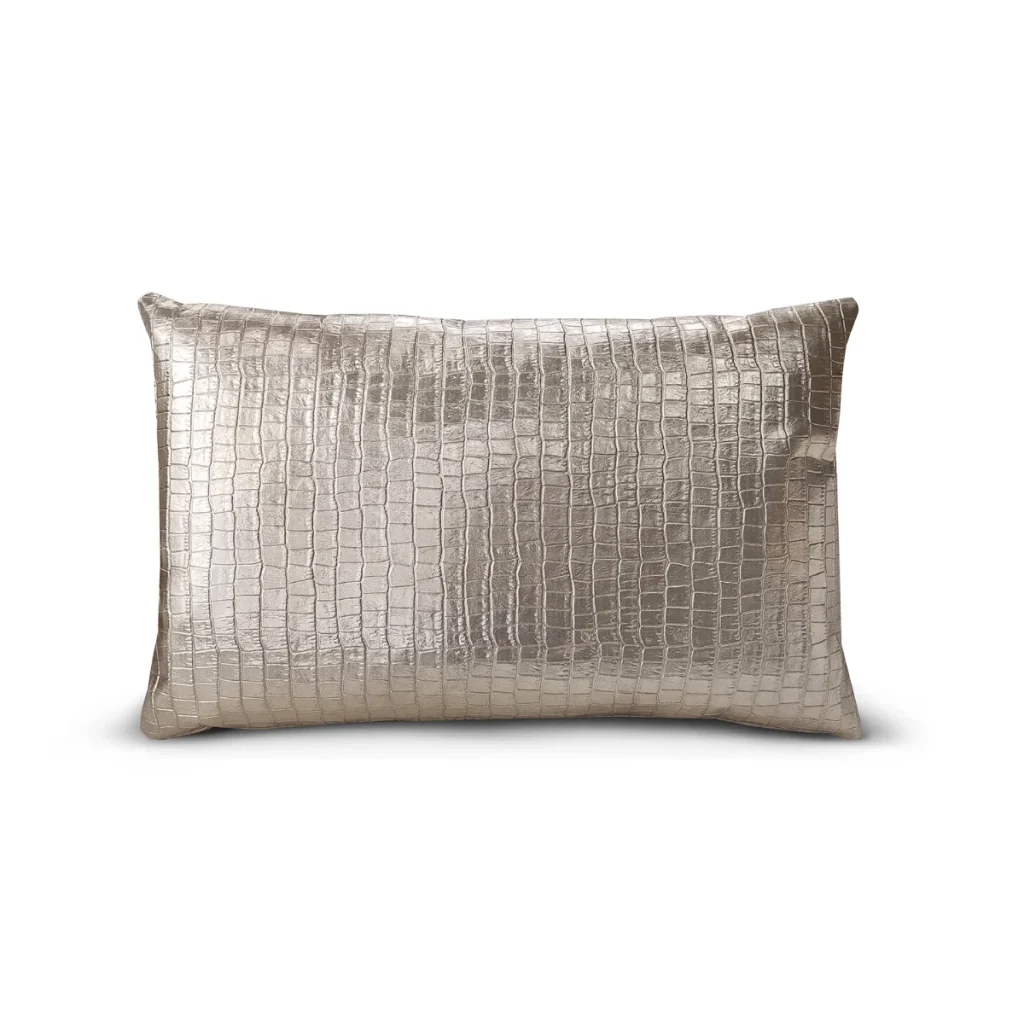 This luxurious RIJD decoration pillow is made in a golden embossed crocodile vegan leather. Made to order; delivery time 4 weeks